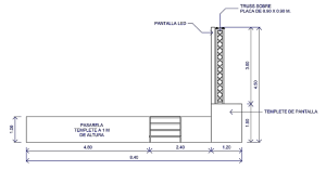 Se garantiza la estabilidad de las estructuras temporales conforme a los parámetros y condiciones bajo las cuales fueron diseñadas. NO incrementar el peso vivo de 113 kilogramos por metro cuadrado y 70 kilogramos en carga muerta, los paneles de la pantalla deben de estar bien anclada a su soporte, así como vigilar constantemente el comportamiento en las bases de las columnas de la estructura truss, en caso de presentar desplazamiento suspender cualquier actividad para protección de sus ocupantes.